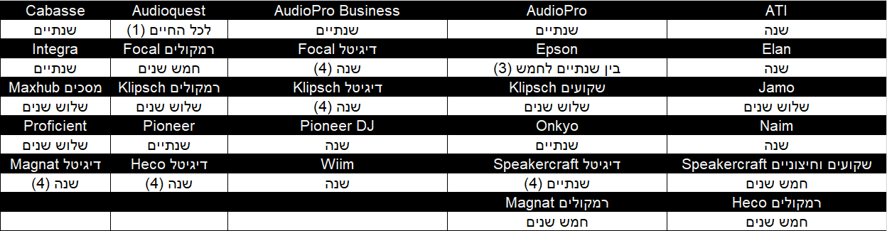 2. האחריות לגבי החלפת מכלול קרן הלייזר למכשירים כגון בלו ריי, דיוידי, וקומפקט דיסק, הינה למשך שנה אחת בלבד.